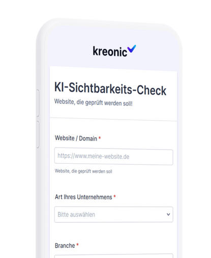 ChatGPT, Gemini und Co. sind die neuen Suchmaschinen. Erhalten Sie Ihren kostenlosen KI-Sichtbarkeits-Check und erfahren Sie, ob Ihre Website für die generative Suche bereit ist.